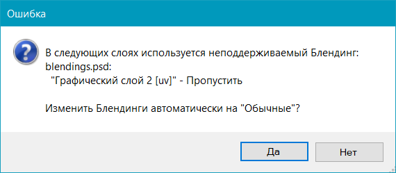 Если же вы установите блендинг Пропустить (Pass Through), то получите предупреждение с предложением автоматически изменить блендинг у группы слоев.