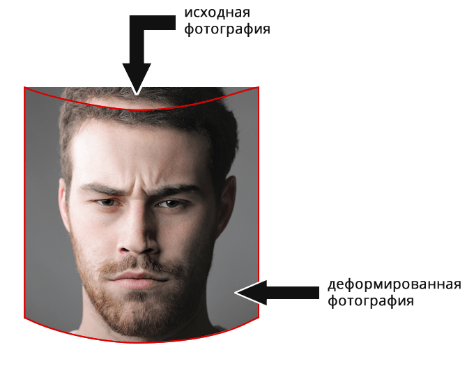При деформировании области вписывания следует учитывать один важный момент. При обработке пользовательской фотографии шаблоном, деформированное изображение накладывается на недеформированное. В тех случаях, когда фотография не перекрывается другими графическими слоями по форме деформации, будут видны артефакты. Например, как показано на изображении ниже, часть исходной фотографии видна на финальном изображении: