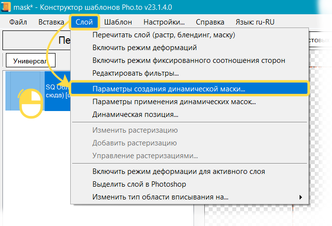 Для того, чтобы открыть диалог параметров создания динамической маски: