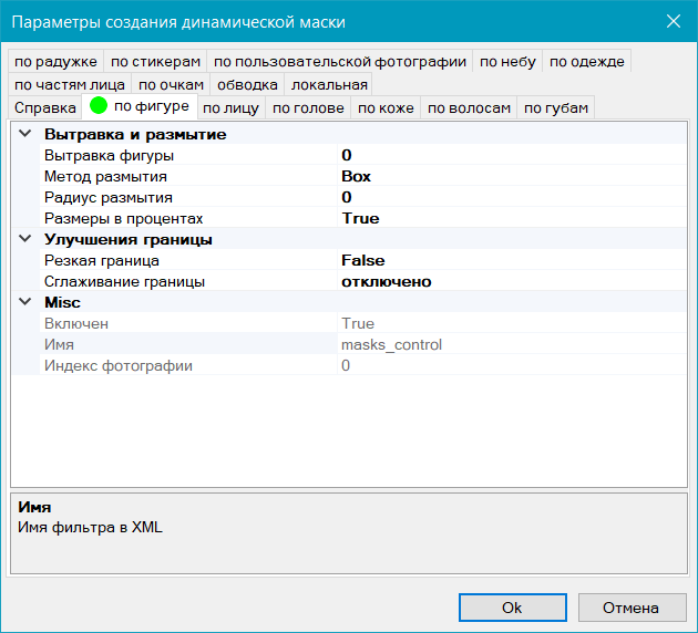 Настройки маски По лицу используются только для операций с лицами (такими, как вырезание лица при его вписывании, построение динамической маски по лицу и использование лицевых фильтров).