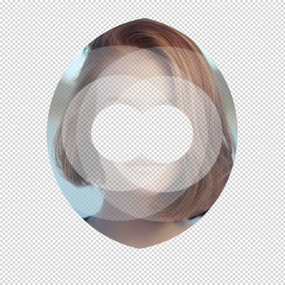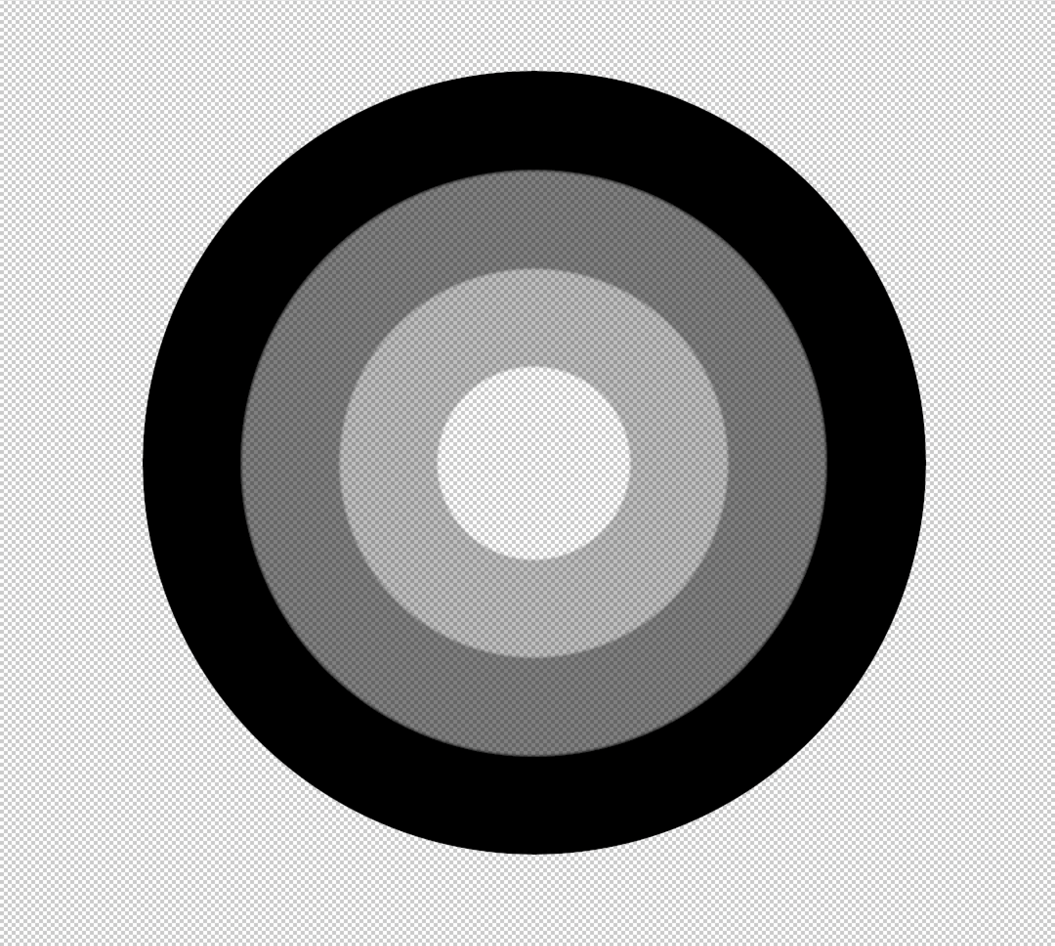 В правом столбце рассмотрим результат работы шаблона с совмещением двух масок по одинаковым стикерам. В качестве стикера мы используем окружность с градиентной заливкой черного цвета от непрозрачного по краю до полностью прозрачного в центре.