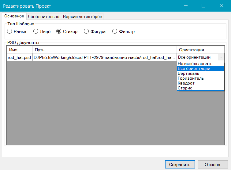 Будьте внимательны: изменение типа шаблона может повлиять на итоговый результат. Так как во всех типах шаблонов, кроме типов Стикер и Фильтр, происходит кадрирование входной фотографии.
