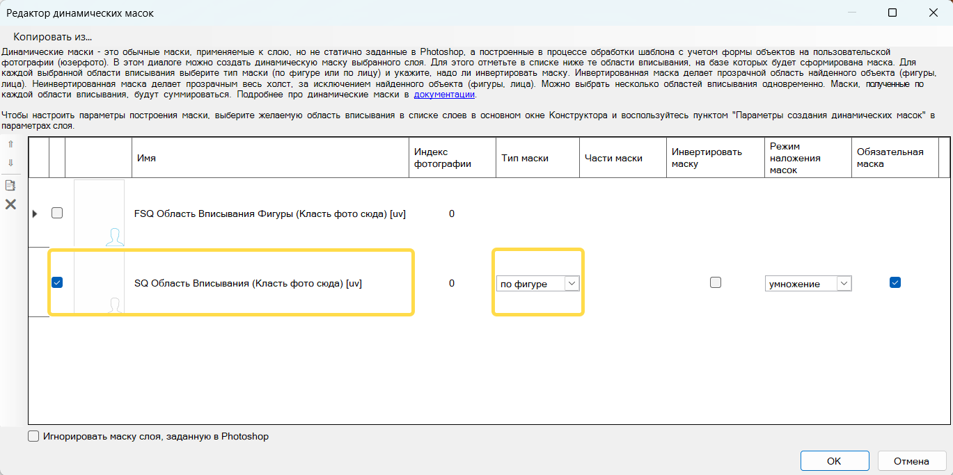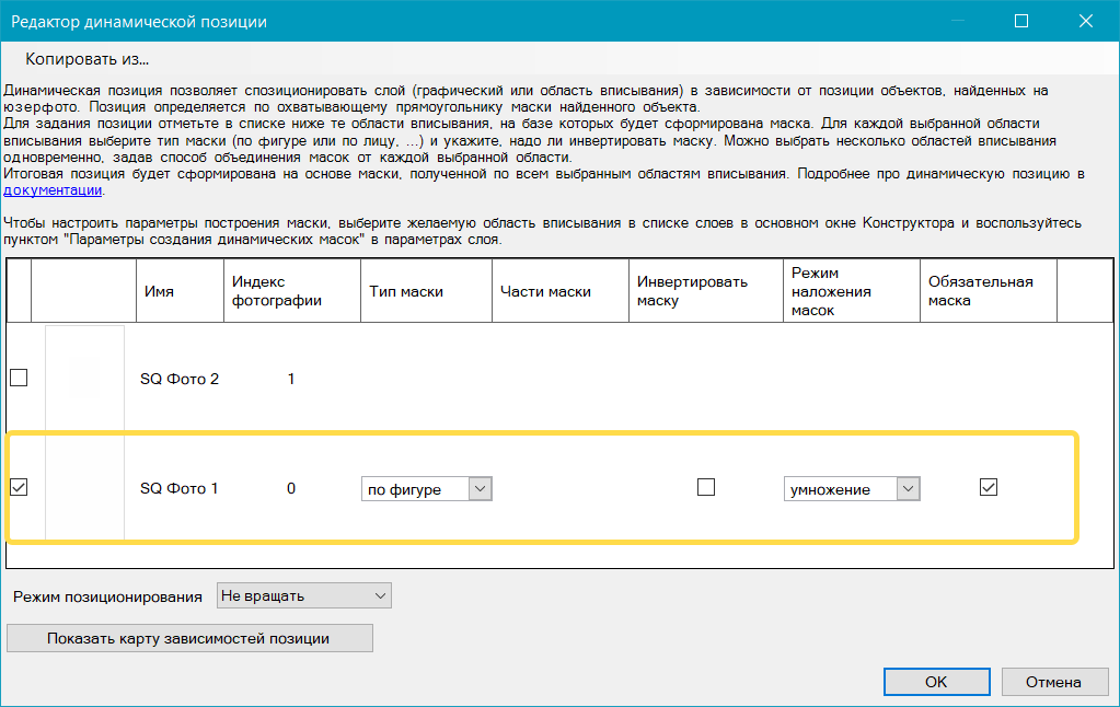 Для области вписывания SQ Фото 2 добавим динамическую позицию по области вписывания SQ Фото 1: - По фигуре.
