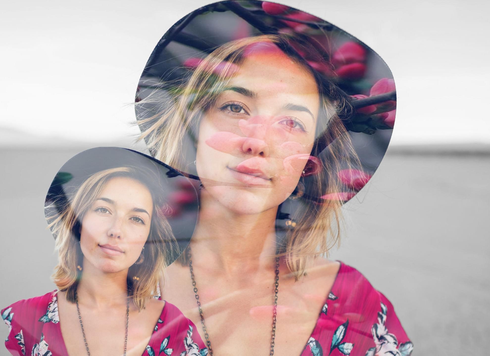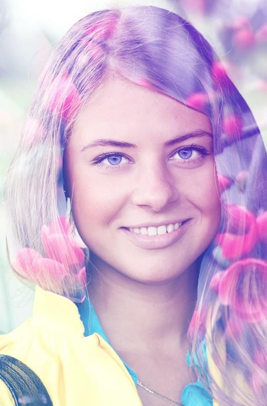 Добавим к уже созданному шаблону ещё один эффект — мультиэкспозицию с цветами, которые будут наложены на волосы и область вокруг фигуры.