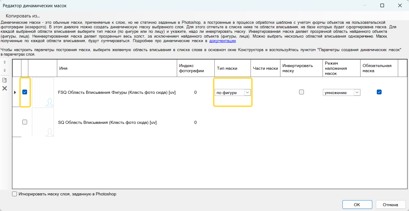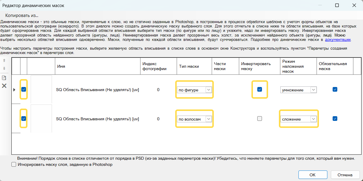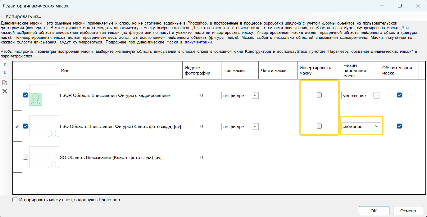 Продвинутое создание шаблона с использованием режимов совмещения нескольких динамических масок