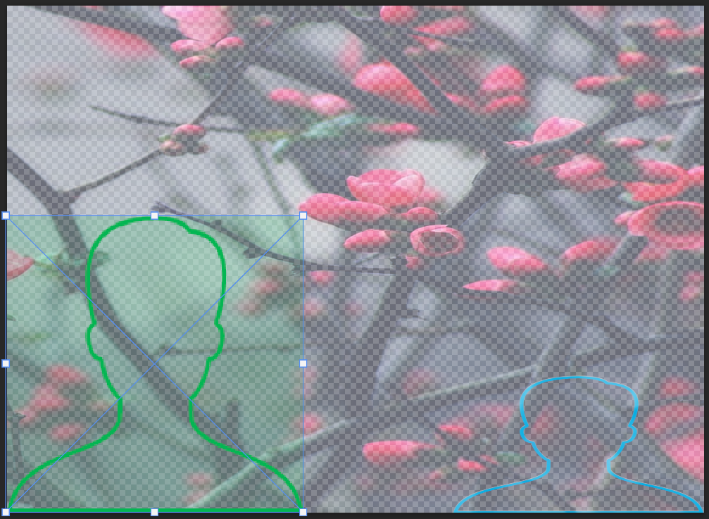 Помните, что в области вписывания подтипа FSQ фигура может располагаться в любой части холста — это зависит от её положения на оригинальной фотографии Комбинирование областей FSQ и FSQR, как показано в этом примере, не позволяет точно контролировать взаимное расположение фигур на итоговом изображении.
