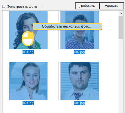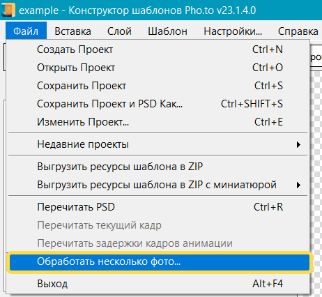 Для более детального тестирования с использованием различных фотографий, следует вызвать диалог обработки нескольких фото. Это можно сделать двумя способами: